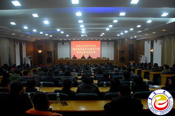 与会人员认真阅读学校校领导班子述职报告、党委任用干部工作报告及校领导个人述职报告。并从政治建设、思想建设、领导能力、工作实绩、作风纪律建设及基层党建工作责任情况等方面,按照“优秀、良好、一般、较差”四个等级对学校领导班子进行了民主测评;从德、能、勤、绩、廉及履行基层党建工作责任情况等方面对领导干部2017年度工作进行了民主测评;并对选人用人工作及新提拔干部工作情况做出了评议。