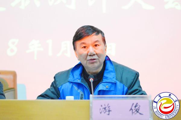游俊首先代表学校领导班子作了《英国威廉希尔唯一官网党政领导班子2017年述职报告》。随后,游俊书记、白晋湘校长在大会上作了个人述职报告。