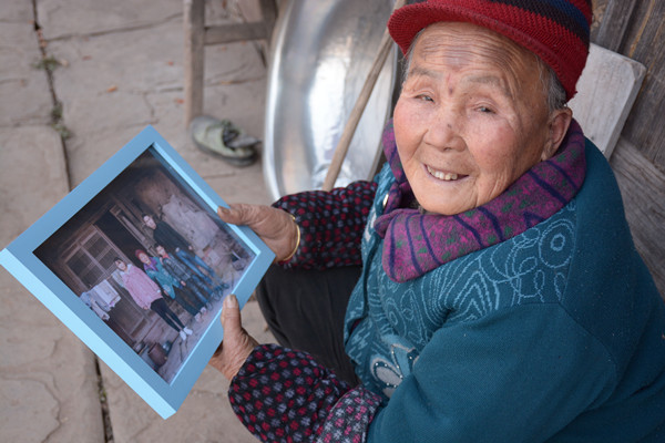 图为老奶奶拿着刚冲印出来的全家福