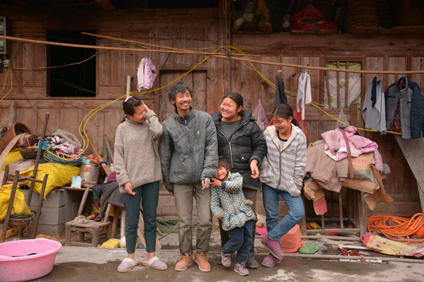 图为拍摄时一家人其乐融融