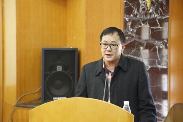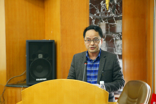 图为数统学院副院长莫宏敏介绍文化节情况 许乐清摄