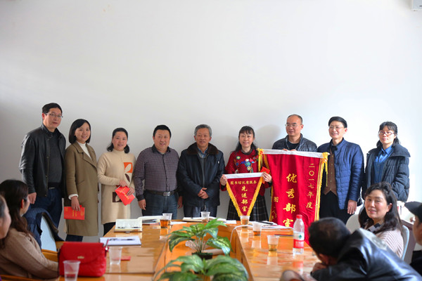徐险峰宣布了2017年度张家界校区分馆部门获奖情况及图书馆优秀共产党员名单。张家界校区分馆信息技术部被评为“综合优秀部室”,流通部被评为“优秀服务部室”。伍晓鲁、李夏艳、廖任文三位同志被评为图书馆“优秀共产党员”。罗金铭分别为获奖单位和个人颁奖。