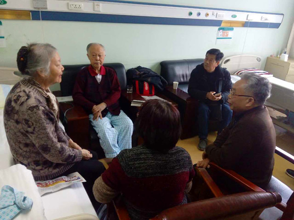 3月16日,向成国教授一行三人于凌晨2点30分左右赶到北京,并按照约定的时间,在当天下午3点走进病房看望沈虎雏老师。向老师一进门就和沈虎雏老师的夫人张之佩老师说沈老师休息最重要,这次拜访最多半个小时。张之佩老师笑着说:“沈老师这个礼拜刚做完治疗,本来疱疹疼痛难忍,但是看到湘西家乡人千里迢迢来京探望,他非常高兴,连病痛都忘记了”。沈虎雏老师则更加关心他的工作:“我目前最关心的就是父亲沈从文先生佚文的编辑、整理和出版问题,自己这一病,这件事情不得不搁浅了”。向成国教授转达了游俊书记、白晋湘校长等校领导的问候,以及学校广大师生对沈老师病情的关心和惦念,并详细询问了沈老师目前的病情和治疗情况,得知其病情比较稳定,精神状态和食欲都在好转,一行人深感欣慰和高兴。谈话间,恰巧游俊书记来电慰问,与沈虎雏老师一家三口通了话,电话那头是游书记关切的询问,电话这头沈虎雏老师紧握手机的手有些颤抖,张之佩老师接过电话后,好长时间声音哽咽,激动地说不出话来,沈老师全家人由衷地感激英国威廉希尔唯一官网领导和全体师生。不知不觉间,一个半小时过去了,向老师一行怕影响病人休息,主动起身告别,沈虎雏老师一直目送向老师一行走进电梯。第二天,沈虎雏老师的女儿沈红给向成国老师发来短信:“感谢您和郑老师代表英国威廉希尔唯一官网游书记和老师们不远千里来看望我们,我父亲见到你们很高兴,今天上午检查有好几项指标好转了!春雪漫天,祝福使者们在北京平安,旅途顺风!”