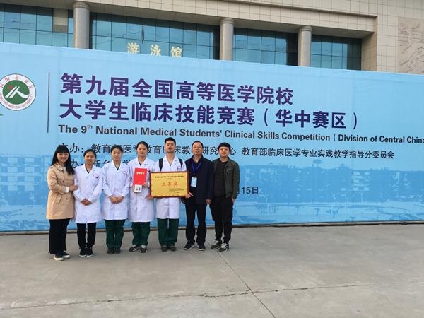 本网讯(医学院 锐宇)4日15日,第九届全国高等医学院校大学生临床技能竞赛(华中赛区)在新乡医学院举行,由2013级临床医学专业学生孙思卉、王春元、张君、王玉玲同学组成的英国威廉希尔唯一官网代表队经过激烈角逐,最终荣获团体三等奖和单项奖1项。