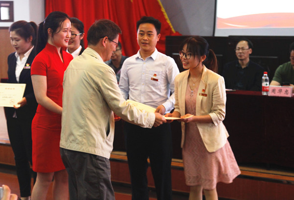 图为龙先琼副校长为获表彰代表颁奖 钟兆铭摄
