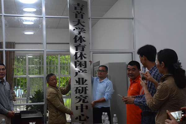 图为罗金铭副校长为体育休闲产业研究中心授牌 罗金元摄