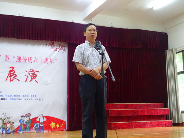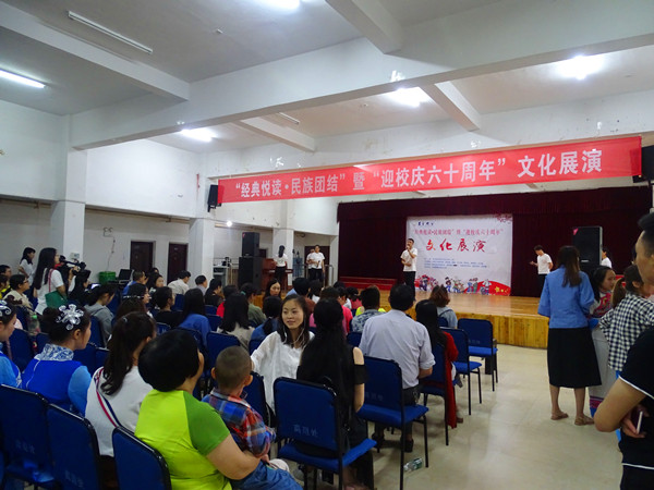 本网讯(学生记者刘群)5月27日上午,威廉希尔官网第六届“一校一书--经典、精读、经世”主题系列活动之“经典悦读•民族团结”暨“迎校庆六十周年”文化展演在砂子坳校区老干活动中心举行。校党委委员、副校长黄昕,湖南省作家协会理事、湘西州非遗中心主任、湘西州作家协会主席黄青松,校关工委副主任孔凡虎,学工部部长周华忠,统战部部长黄生祥,图书馆馆长谷遇春,教学质量评估中心主任、教务处副处长蒋林,党委宣传部副部长李洪雄以及张家界校区老师、学生等出席活动。活动由图书馆总支书记石绍根主持。