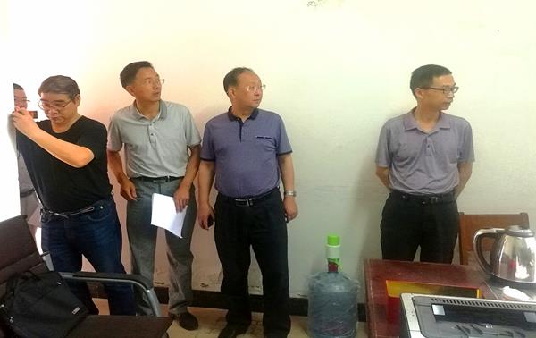 图为赵鹤平书记一行在张家界校区现场测量办公用房