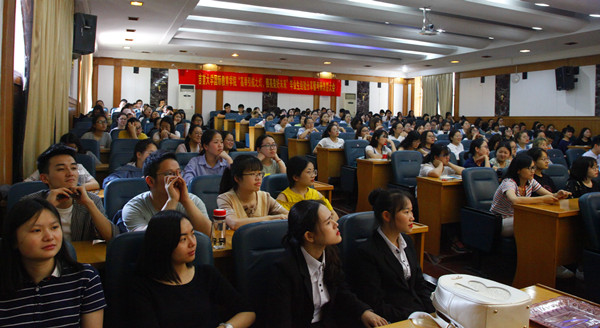 刘汝荣作总结发言。她从“感谢、祝贺、加油”三个关键词入手,指出成就离不开学校与学院全体师生的付出。8名优秀学子从备考研究生与公务员、学业规划、创新就业与社会实践等方面进行了经验分享,令人受益匪浅。她希望,2014级的毕业生随时都要有勇气和决心一路向前,2015级、2016级学生要吸取教训,规划未来方向,取得更优异的成绩。