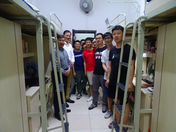 以上图为游俊书记、白晋湘校长一行深入学生宿舍看望毕业生后合影
