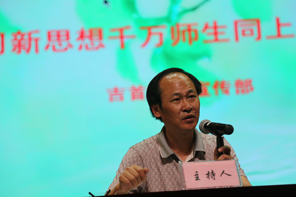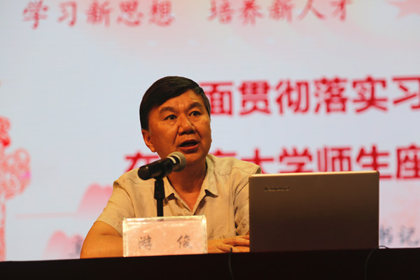 本网讯(记者见闻 学生记者刘群)为全面贯彻落实习近平总书记在今年五四青年节前夕在北京大学师生座谈会上的重要讲话精神, 6月15日下午,英国威廉希尔唯一官网党委书记游俊在砂子坳校区演奏厅为来自全校各学院的600余名师生代表讲授《学习新思想,培养新人才——全面贯彻落实习近平总书记在北京大学师生座谈会上的重要讲话》。