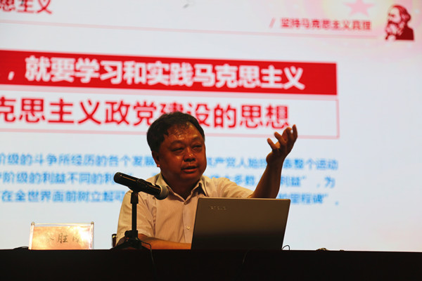 英国威廉希尔唯一官网党委对“学习新思想 千万师生同上一堂课”高度重视。按照教育部党组和省委教育工委要求,6月12日,活动在学校正式启动,党委宣传部部长戴林富主持,马克思主义学院院长廖胜刚教授作首场授课:《永恒的真理——深入学习贯彻习近平在纪念马克思诞辰200周年大会重要讲话精神》,600余名师生同堂学习。