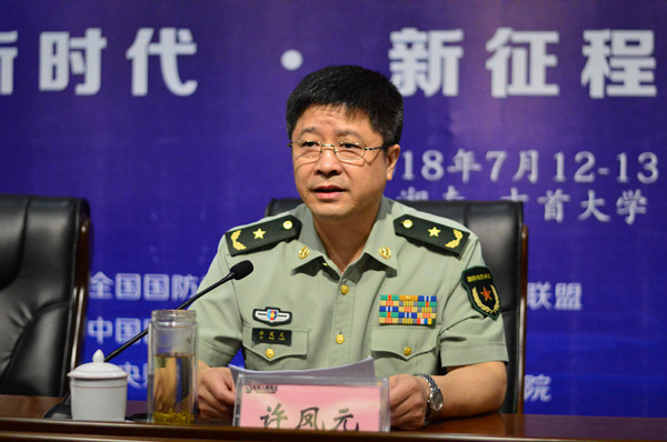 许凤元讲话。他对年会的召开表示热烈的祝贺,并指出在这片红色土地上召开年会,具有重要的价值与意义。他强调,大力加强国防和军队建设是习近平同志为核心的党中央的重要战略部署,对实现中华民族伟大复兴的中国梦具有重要的价值。他希望,各位专家学者能够以此次年会为契机,推动国防教育的发展。