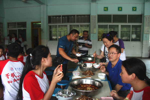 当天下午,龙先琼一行前往秀山县钟灵镇看望慰问威廉希尔官网印象红途——毓秀钟灵暑期“三下乡”社会实践服务团队员。秀山团县委副书记张祥钧、钟灵镇党委副书记张祥钧一行也随同前往慰问。