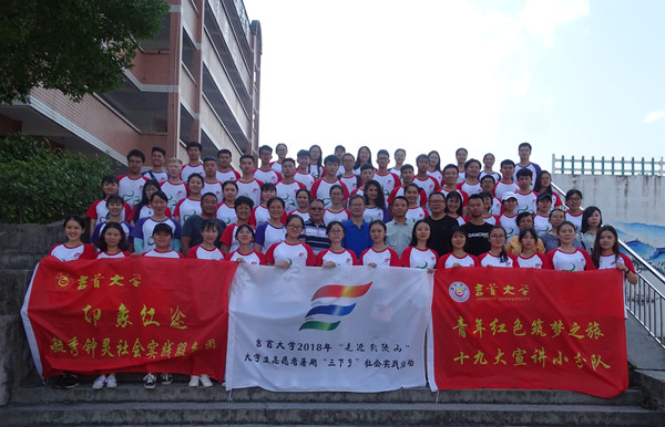 图为龙先琼副校长一行与实践队员合影 刘群摄