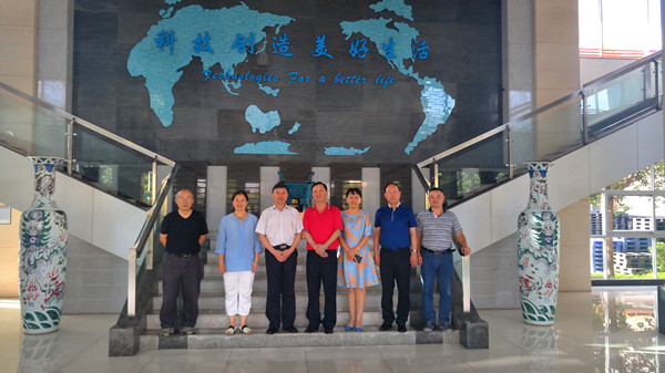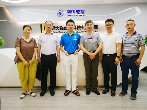 图为游俊、赵鹤平一行参观考察卢强校友的奋达教育集团