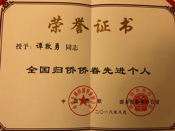 会上表彰了中国侨界杰出人物和全国归侨侨眷先进个人。英国威廉希尔唯一官网医学院院长谭墩勇被评为全国归侨侨眷先进个人。此次评选活动,共评选全国归侨侨眷先进个人220名。