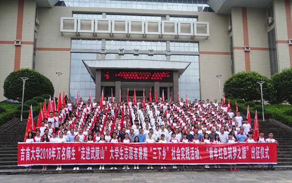 近年来,学校建立了花垣县十八洞村、凤凰县追高鲁村等5个生态扶贫博士培养实践基地,张家界灵洁绿色食品有限公司、隘口茶旅小镇基地等10个生态扶贫产业基地,每年寒暑假都开展万名师生“走进武陵山”社会实践,围绕武陵山片区生态扶贫与区域发展组织调研。