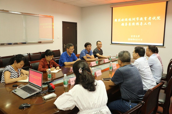本网讯(招生就业处供稿)9月11日下午,株洲市教育考试院党委书记刘铁华、副院长刘华和易德发等一行5人来校交流高校招生工作,副校长龙先琼率招生就业处全体人员在创业园212会议室接待来宾并进行座谈,会议由招生就业处处长刘昌茂主持。