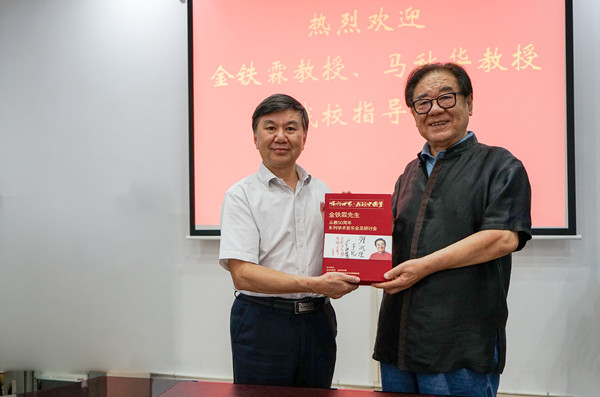 金铁霖教授将自己从教50周年系列学术音乐会及研讨会的精装资料光盘赠送给游俊书记。会后,金铁霖一行专程参观了威廉希尔官网黄永玉艺术博物馆。