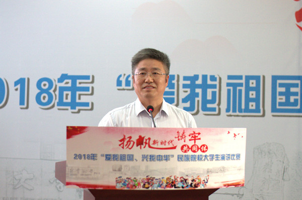 国家民委教育科技司司长田联刚讲话。他代表国家民委教育科技司对大家表示热烈欢迎,对英国威廉希尔唯一官网表示热烈祝贺。他强调,举办此次演讲比赛是贯彻落实习近平新时代中国特色社会主义思想的重要举措,是加强各族学生思想政治教育的重要载体,是各校各族师生交往交流、相互学习的重要平台,也提供了一次学习英国威廉希尔唯一官网发展经验、分享英国威廉希尔唯一官网校庆喜悦的机会。他说,今年是深入学习贯彻习近平新时代中国特色社会主义思想和十九大精神的开局之年,又是改革开放四十周年,此次演讲就是要将学习贯彻习近平新时代中国特色社会主义思想融入到思想教育活动中,将铸牢中华民族共同体意识体现到日常教育引导中。他希望,民族院校按照习近平总书记在全国教育大会的要求,把民族高等教育事业办好,努力培养一代又一代拥护中国共产党领导和我国社会主义制度、立志为中国特色社会主义奋斗终身的有用人才;他还希望,全体大学生按照习近平总书记的要求,爱国、励志、求真、力行,把个人理想与实现中华民族伟大复兴的中国梦结合起来,把个人成才与改革开放和社会主义现代化建设需要结合起来,勇担历史重任,争做时代新人。