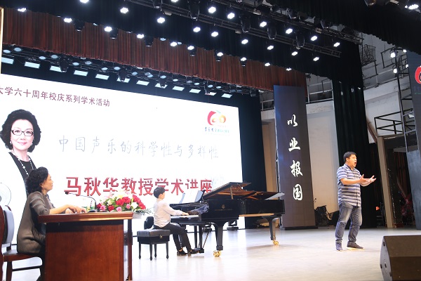 9月20日下午,马秋华教授在音乐舞蹈学院实验剧场作了主题为《中国声乐的科学性与多样性》的学术讲座。数百名师生和部分慕名而来的湘西州声乐爱好者,早早地等候在讲座地点,现场座无虚席。马秋华教授系统地讲解了中国声乐发展的脉络,以及中国声乐教育体系的形成,进而全面地阐述了中国声乐的科学性与多样性特征。她指出,中国声乐的发展演变过程,是一个实践、总结、再实践、再总结的过程,也是一个继承、借鉴、发展、创新的过程。何为中国声乐的科学性?她说,这个科学性,是指用科学的指导思想指导科学的发声,用“混合声”达到全共鸣歌唱。中国声乐的科学性,在继承传统和吸纳民族民间的音乐元素的基础上,充分借鉴国内外的实践经验,既符合世界的科学的通行规律,又体现了中国声乐自己的民族气息、民族情怀、民族情感、民族语言。如何体现歌唱的多元性?马秋华教授认为,每一个民族都有属于自己的音乐艺术元素,音乐来源于生活,习俗不同,语言不同,音乐就不同,比如山东民歌朴实敦厚、山西民歌诙谐幽默、陕北民歌苍凉悠远、蒙古族民歌苍劲优雅、新疆维吾尔族民歌热情奔放……演唱不同风格的作品,一定要先学习、了解作品,理解作品所赋予的思想内涵与情感,“有思想的歌唱、学习、教学,这是我们出成果所必须具备的”。她强调,学习中国声乐,学习是基础,思考是关键,实践是根本。马秋华教授还通过自己的示范演唱,传授了独特的发声和歌唱技巧。她说,“歌唱就是说话,你在歌唱中学会了说话,你就真正学会了唱歌”。她的讲解和示范,获得了观众的强烈共鸣,现场掌声阵阵、气氛热烈。讲座最后,马秋华教授还对威廉希尔官网音乐舞蹈学院于国良等部分师生的演唱进行了现场指导,对威廉希尔官网师生的声乐艺术水平给予了很高的评价。
