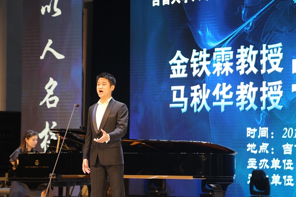 讲学期间,还举行了金铁霖、马秋华教授学生音乐会。金铁霖教授的博士研究生孙娇娇、伏海、姚瑶、石玲,本科毕业于威廉希尔官网音乐舞蹈学院的马秋华教授的硕士研究生郁留成,演唱了《包楞调》《唐璜小夜曲》《复仇的火焰在心中燃烧》《我的深情为你守候》《游移的月亮》等15首中外经典声乐作品,让全场观众享受了一场音乐的盛宴,场内掌声接连不断。金铁霖、马秋华教授的儿子,目前留学海外的金圣权也前来助阵,原本没有出现在节目单中的他,亦歌亦舞,给观众带来意想不到的惊喜,把现场气氛进一步推向高潮。