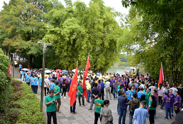 本网讯(校工会 张彦)为庆祝建校60周年,丰富校园文化生活,增强教职工身体素质,推动健康校园建设,9月28日下午1点,校工会在吉首和张家界校区同时组织庆祝建校60周年“爱在吉大”为主题的教职工登山活动。 校党委委员、副校长、校工会主席龙先琼,校党委委员、副校长王绯分别在两校区为登山发令。校党委委员、副校长冷志明,校党委委员、组织部长张兰芳参加了活动。