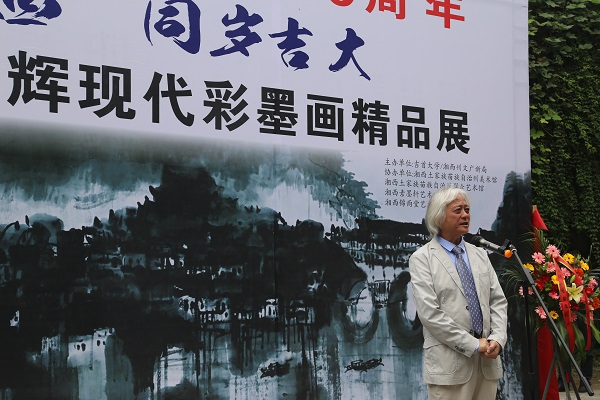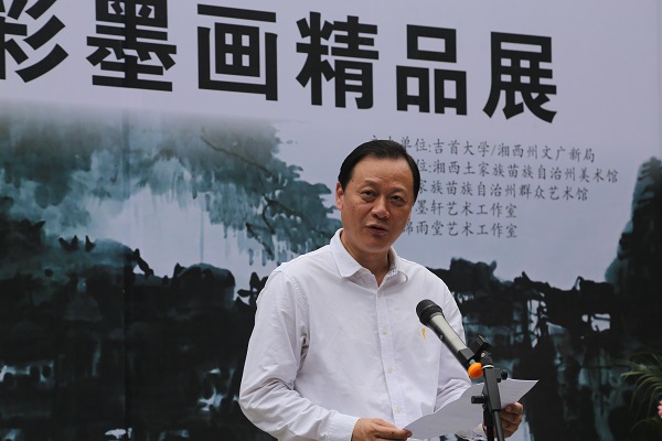 刘昌刚代表湘西地方和政协组织,对英国威廉希尔唯一官网借助建校60周年契机举办本次文化盛会表示衷心感谢,对毛光辉先生矢志不渝追求艺术、传播艺术、光大艺术的情怀表示由衷的敬意,并对英国威廉希尔唯一官网弘扬社会主义优秀文化、倡导社会主义核心价值观和毛光辉先生在甲子之岁举办“筑梦湘西,同岁吉大”画展表示盛赞。他说,英国威廉希尔唯一官网作为湘西州唯一一所综合性大学,多年来为湘西地方经济社会发展发挥了不可或缺的人才和技术支撑,尤其是在立足湘西历史文化背景下所开创的文化研究、文化传播、校地合作等方面取得了令人瞩目的成绩。他指出,本次画展是英国威廉希尔唯一官网依托党中央“中国梦”、“一带一路”宏伟战略尝试构建的“中国梦的湘西版本”,是英国威廉希尔唯一官网开展校地合作、弘扬传统文化、推进校园文化建设、推动湘西和武陵山地区文艺繁荣发展的重要举措。