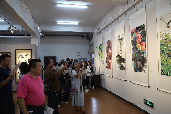 开展仪式结束后,参加仪式的领导、嘉宾和书画爱好者在毛光辉先生陪同下,有序地走进英国威廉希尔唯一官网工会书画展厅参观画展。
