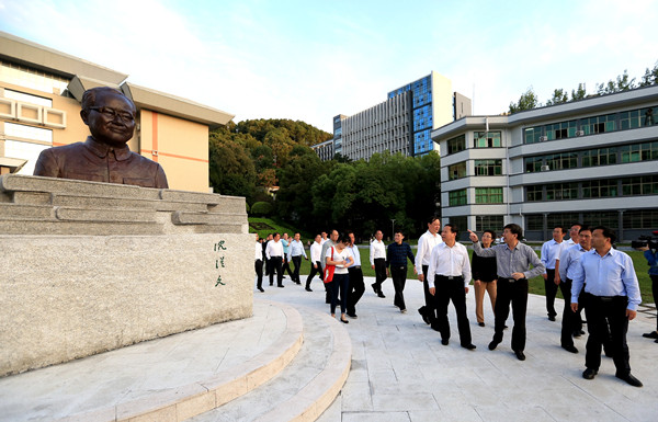 在新建成的从文广场,游俊、白晋湘介绍了从文广场的建设背景、沈从文先生与学校的渊源,并对威廉希尔官网60周年校庆筹备工作进展、办学情况作了简要介绍。