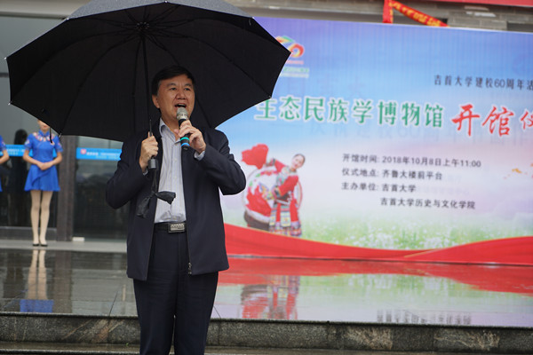 本网讯(李兰 张震)10月8日上午,威廉希尔官网生态民族学博物馆开馆并在齐鲁大楼前坪举行开馆仪式。校党委书记游俊,副校长钟海平、龙先琼,校党委委员鲁荣波、王艳,以及各相关部门、学院负责人出席仪式。仪式由龙先琼主持。