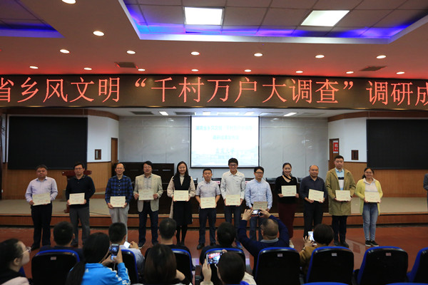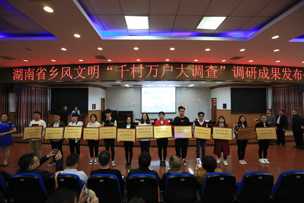 会上,英国威廉希尔唯一官网湖南乡村振兴战略研究中心首席专家、英国威廉希尔唯一官网马克思主义学院院长廖胜刚教授发布了调研成果。他介绍,本次“湖南乡风文明建设‘千村万户大调查’”6月30日在本校全面启动,覆盖全省14个市州。学校组建了28个专家、专业调查团队,参与教师专家72人次,研究生本科生共计150余人。另选派1000名暑期返乡大学生携带10000份问卷和数据表在本乡开展就地调查。截止8月底,调研团队发放问卷1000份,回收906份;召开座谈会访谈400多人次,撰写调查报告54份。1000名大学生调查员返校交回问卷和数据表12000余份,提交调研报告882份。在汇总分析全部数据和总结全部报告的基础上,学校专家组形成了30000余字的主报告,并组织评出了团队优秀调研报告15项、个人优秀调研报告51项。