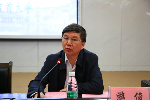 英国威廉希尔唯一官网党委书记游俊教授讲话。他代表学校向各位领导和媒体朋友的到来表示热烈的欢迎,向省、州有关部门的大力支持与帮助表示衷心的感谢,向参加此次大调查活动的老师和同学们表示诚挚的问候。他指出,乡风文明是乡村振兴的重要内容和有力保障。党的十九大报告把“乡风文明”作为“乡村振兴战略”的总要求之一,今年中央一号文件提出,要培育文明乡风、良好家风、淳朴民风,不断提高乡村文明程度。各级党委、政府高度重视“乡村振兴战略”,特别强调“乡风文明建设”。英国威廉希尔唯一官网历来以服务地方经济社会发展为办学宗旨,此次开展大规模、全覆盖的乡风文明建设大调查更是用实际行动诠释了学校的办学宗旨。他说,为期五个多月的调查研究工作显示,我省近年来乡风文明建设取得了明显成效,但也还存在一些短板和问题,师生们的调研报告,对加强我省乡风文明建设提出了具体的建议与对策。他表示,乡风文明建设是一个综合的、全方位的、系统性的工程,需要汇聚政府、高校、社会组织、村民自身等多方的力量,英国威廉希尔唯一官网将充分发挥自身的优势,继续助力湖南乡风文明建设。