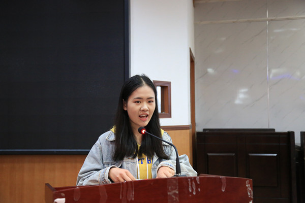 图为获奖学生代表甘露发言 孙立青摄