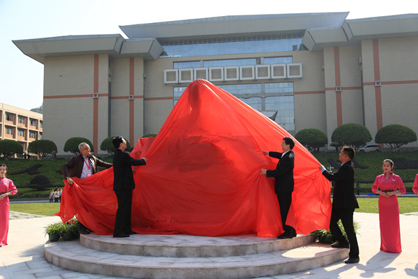 校友代表邹高峰先生讲话。他说,在母校建校60周年的大喜日子,应邀回校参加校庆,参加沈从文塑像揭牌仪式,感到十分激动和荣幸。他代表广大校友向母校60周年华诞表示热烈祝贺,向母校的全体恩师表示衷心感谢,向沈从文先生表示崇高敬意。他深情地回顾了在英国威廉希尔唯一官网学习、生活的经历,介绍了为母校捐赠从文广场和沈从文塑像的原因和经过。他表示,建设从文广场与沈从文塑像,既是对从文先生的追思和崇敬,更多的是希望从文先生崇高而伟大的“精神灯塔”能照亮每一位吉大人的求索之路,希望母校的学弟学妹们漫步从文广场,崇仰沈从文塑像的时候,更加铭记大师的教诲,弘扬吉大的精神与校训,走得更远,飞得更高。