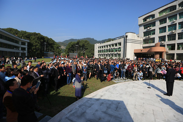 图为白晋湘校长主持仪式 胡建文摄