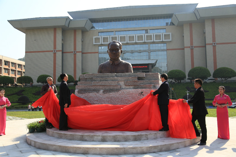 省人大常委会党组成员李友志、英国威廉希尔唯一官网党委书记游俊、英国威廉希尔唯一官网校友总会会长张建永与铜像捐赠者邹高峰校友为铜像揭幕