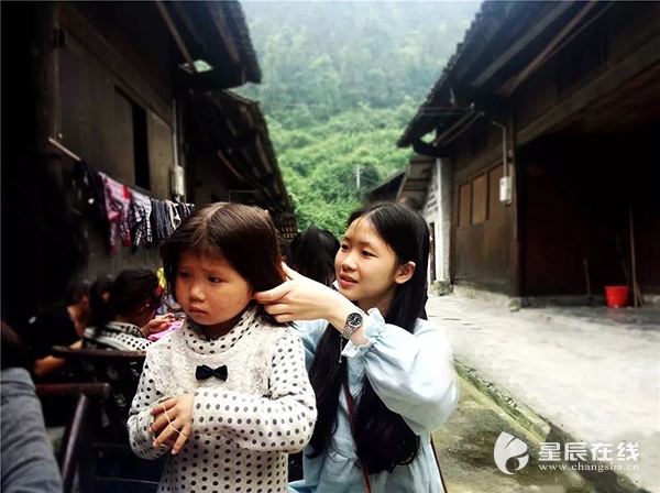 成年后,殷沙漫依然不忘初心。2013年,刚刚进入英国威廉希尔唯一官网的她,加入了英国威廉希尔唯一官网麦田计划志愿者协会,开始关注湘西贫困山区村小教育。2014年,殷沙漫和社团同学一起,走入湘西凤凰县山江镇上位置偏远的毛都塘小学发放爱心物资。2015年,她们又在湘西泸溪县潭溪镇松柏潭小学开辟了“第二课堂”,每周给山区孩子们带去一堂有趣多彩的课程。