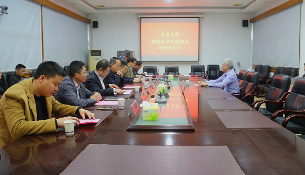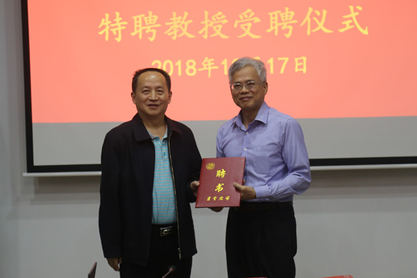 图为钟海平副校长为姚任之颁发特聘教授聘书 钟兆铭摄