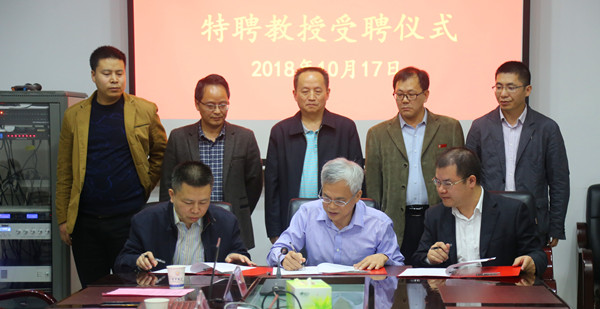 魏风劲、方东辉与姚任之代表双方分别签订特聘专家工作相关协议。随后,钟海平为姚任之颁发特聘教授聘书。