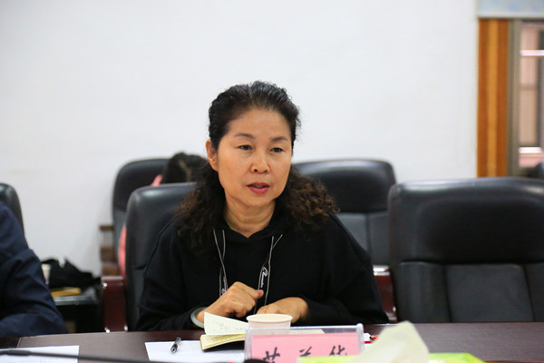 工作组党委副书记、副组长、教学协调小组组长艾美华讲话。她主要介绍了教育协调小组的工作内容,表示将与学校一同推动新疆籍少数民族学生成长成才。