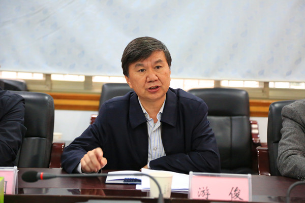 游俊致欢迎辞。他代表学校对来校调研座谈的新疆驻湖南工作组表示欢迎,感谢工作组对学校人才培养的支持,并简要介绍了学校的基本情况。