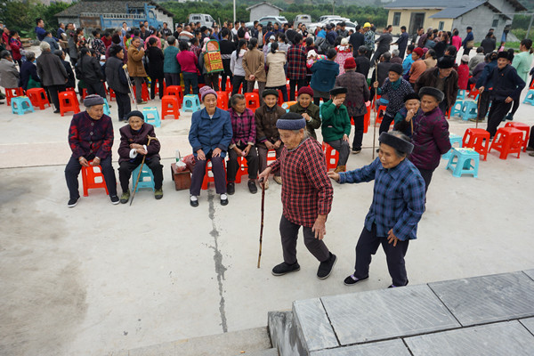 在进行村民小组运动会的一个多小时里,我放下了话筒,让陈支书主持会场,然后我们就开始给80岁以上的老人们拍照,用一张照片的方式表达我们的重阳祝福。