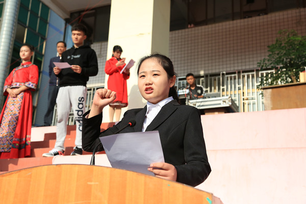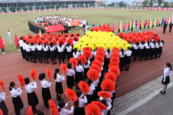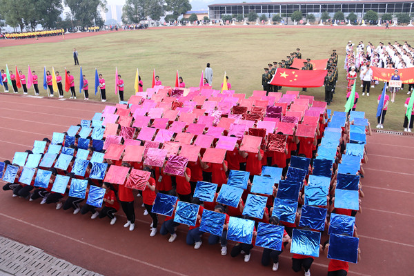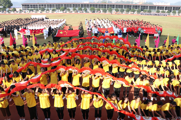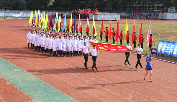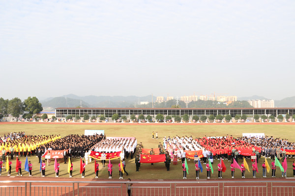 各学院方阵队入场,升国旗,奏唱国歌。