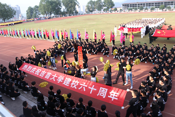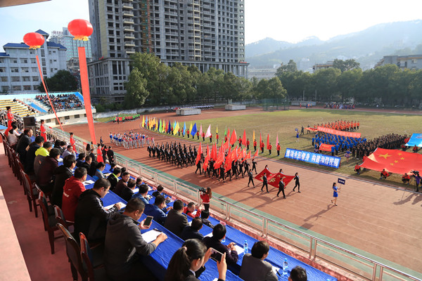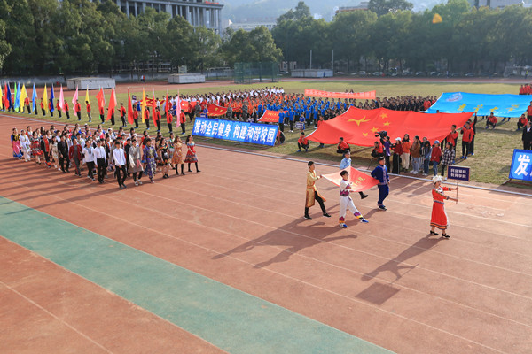 上图为吉首校区各学院方阵队入场 孙立青、钟兆铭摄