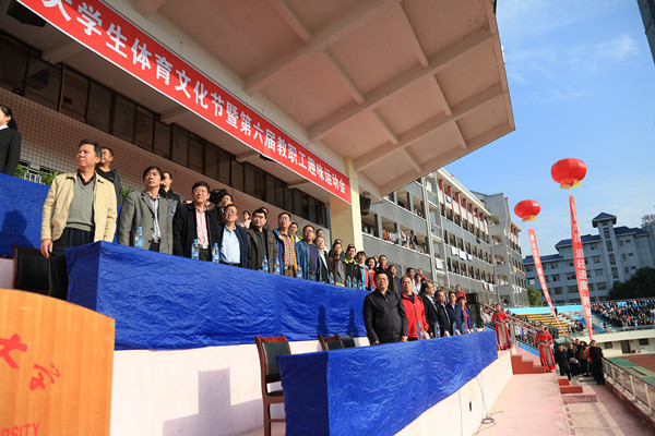 黎奇升、王绯分别在两个校区致开幕辞。他们代表学校党委、行政向文化节和运动会的召开表示热烈的祝贺,向为文化节和运动会的筹备、组织与安排付出辛勤劳动的体育学院、职能部门、各学院表示衷心的感谢。他们强调,体育是人类文明的重要成果,是科学,更是文化。本届体育文化节和运动会是学校60周年校庆后召开的第一次重大盛会,也是学校获批博士授权单位、迈入一本招生高校行列后的第一次重大盛会。旨在检验学校近两年体育教育的成果,展示师生的精神风貌和身心素质,传承和弘扬优秀的体育文化,促进学校体育事业健康、蓬勃发展。针对各单位、各学院,裁判员、运动员以及工作人员,黎奇升、王绯分别提出四点希望:希望本届大学生体育文化节暨教职工运动会能够充分展示团结协作、你追我赶、奋发向上的集体形象;希望裁判员在比赛中能够牢固树立公平、公正、公开的意识,真正做到公正裁判,严格执法;希望运动员在赛场上能够发扬和谐向上、更高更强的精神,赛出风格,赛出水平;同时希望在热情周到且主动的服务里,文化节和运动会能够顺利进行。