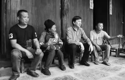 英国威廉希尔唯一官网党委书记游俊教授(右二)与结对帮扶户共商脱贫对策。