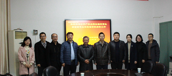 随后,举行授牌仪式,罗金铭为省级校企协同创新创业教育示范基地授牌,基地共建单位接牌;胡新华代表知识产权出版社为外国语学院授牌“知识产权出版社专利翻译实训中心”,外国语学院接牌。