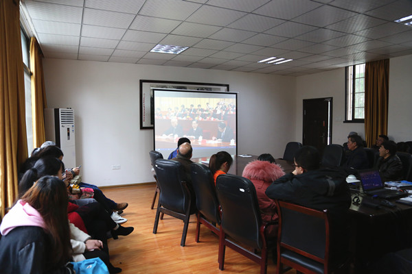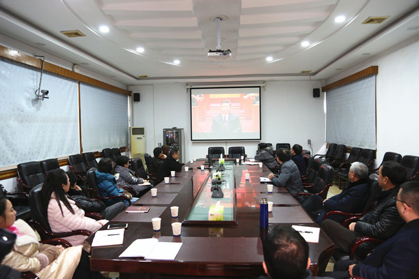 图为物理与机电工程学院师生在院会议室收看大会 孙立青摄